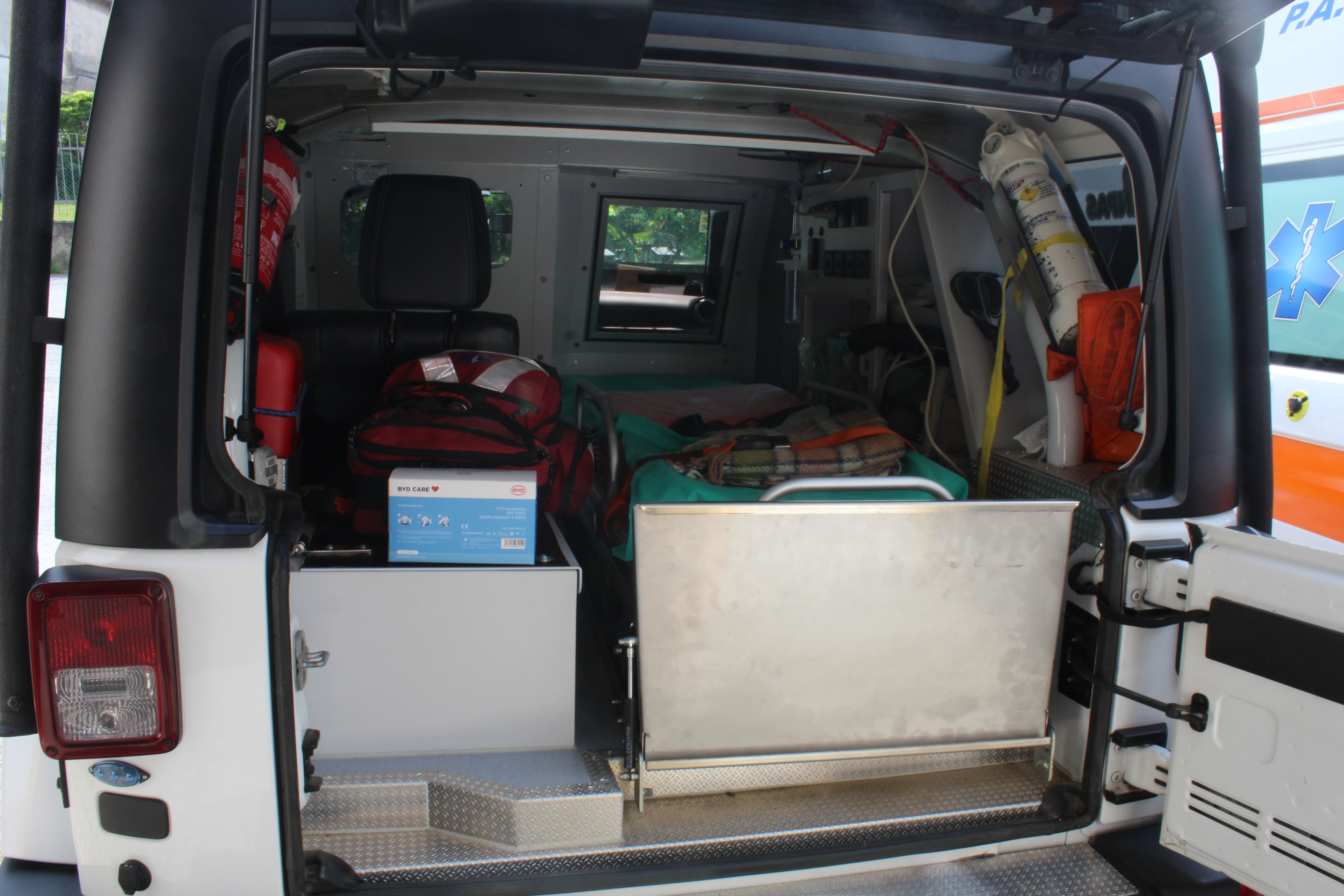 Sono due ambulanze Volkswagen Kombi 4x4 (2823 e 2824) una ambulanza per soccorsi fuoristrada Jeep Wrangler (2822) ed un veicolo Fiat Doblò attrezzato per carico automatico e trasporto su carrozzina di pazienti impossibilitati a camminare.